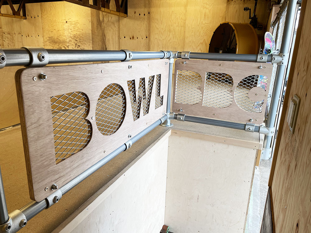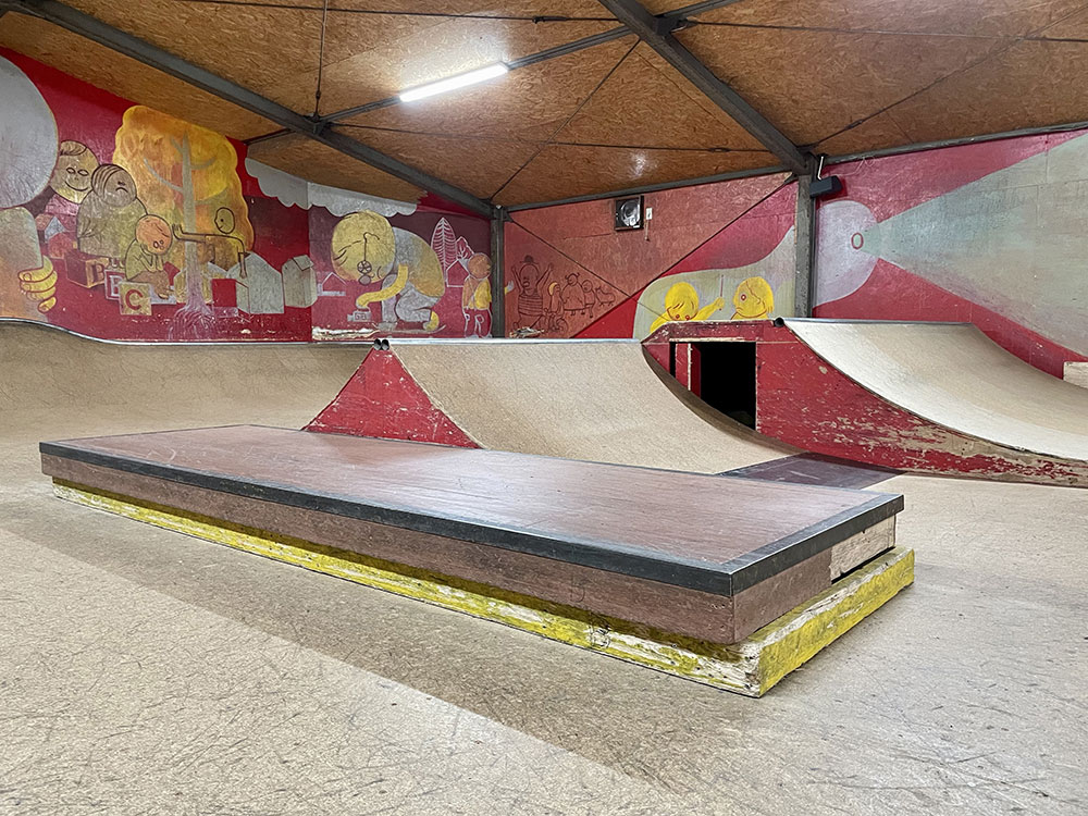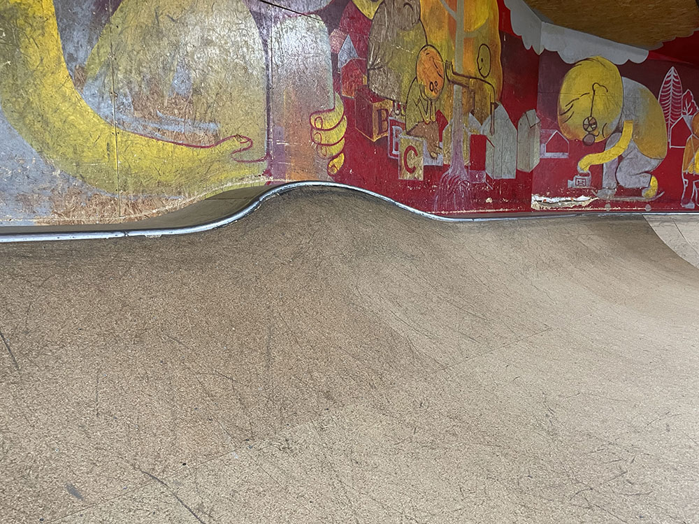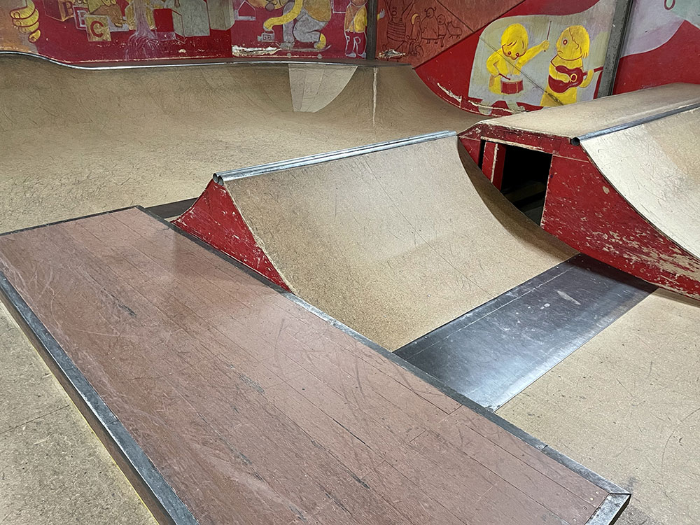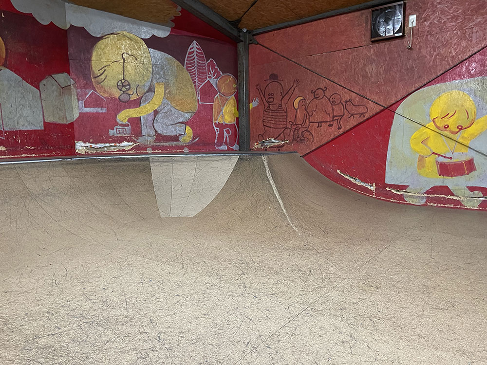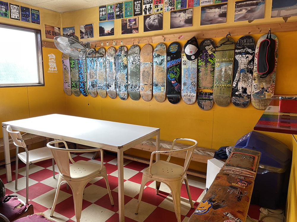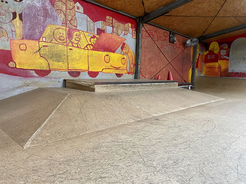 2015年にオープンしました川口店は2階建ての倉庫にスケートパークがはいっております。シャッターにはハンバーガーがスケートボードをしており目印になっております。受付ボウル側2階にあるよ!